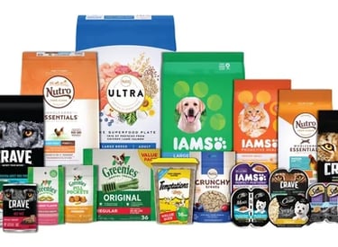 Pet Food & Treats—nutritious meals and snacks for dogs, cats, and small pets.