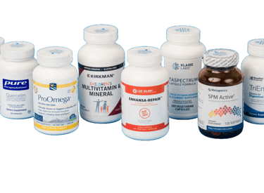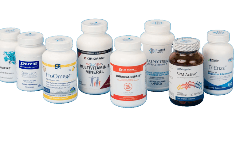 Health Essentials—supplements, vitamins, first aid, and medical supplies.